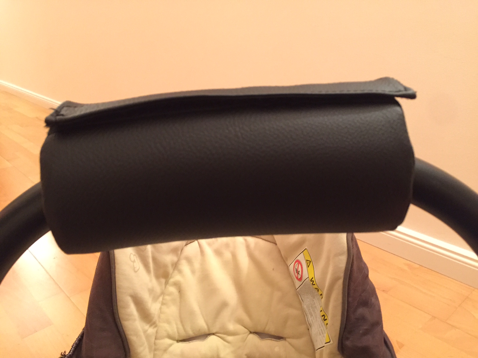 Das Polster ist 100% vegan, aus elegantem schwarzen Kunstleder, einfach zu verschließen und passt sich perfekt dem Bügel der Babyschale an.