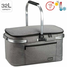 Navaris Thermo Einkaufskorb Kühltasche faltbar – 27L Kühlkorb Picknickkorb Isolier Korb – 43x26cm Einkaufstasche Coolerbag auslaufsicher in Rot