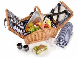 GOODS+GADGETS Picknickkorb für 4 Personen – Luxus Weidenkorb für Picknick mit Picknickdecke und Kühltasche