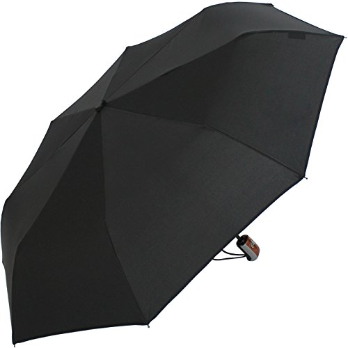 iX-brella first class – Black Edition – stabiler großer Taschenschirm mit edlem, ergonomischen GriffZeitlos, stabil und wertig. So beschreibt man am besten diesen treuen Begleiter. Das fast einen Meter große Schirmdach schützt auch bei stärkerem Regen zuverlässig vor Nässe. Der ergonomisch geformte, stilvoll verchromte Griff, liegt sehr gut in der Hand und erhöht den Tragekomfort auch bei langer Nutzung.Dieser Taschenschirm, für Damen und Herren gleichermaßen geeignet, besitzt ein stabiles und flexibles Stahlgestell mir Glasfiberkomponenten. Diese machen den Regenschirm wind- und überschlagfest. Überschlägt sich der Schirm im Wind, nimmt das Gestell keinen Schaden. Er ist ein zuverlässiger Begleiter in Ihrer Tasche, im Auto, oder im Reisegepäck.Geöffnet und geschlossen wird das große Dach per Knopfdruck. Um den Federmechanismus der Auf- und Zu- Automatik neu zu spannen, muss lediglich der Teleskopstock wieder zusammen geschoben werden.Merkmale: · Stabiles Stahl-Fiberglas Gestell· Mechanismus: Auf-Zu-Automatik· Durchmesser ca. 97cm· Größe Zusammengelegt ca. 28cm· Dachunterteilung: 8 Segmente· Bezug: 100 Prozent Polyester· Gewicht ca. 369 g