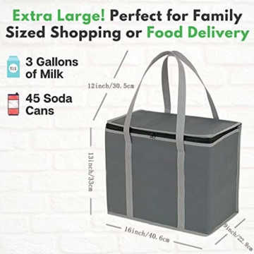 【HÄLT LEBENSMITTEL KALT】 : Ein glatt verschiebbarer Reißverschlussdeckel und ein isolierter Innenraum halten Ihre Lebensmittel, Getränke und andere kalte Gegenstände auf ihrer ursprünglichen Temperatur. Je mehr Sie die wiederverwendbare Tasche füllen, desto länger bleiben Ihre Artikel kalt!, 【STARK & LANGLEBIG】 : Hergestellt aus hochwertigem, strapazierfähigem Vliesstoff – Extra starke, reißfeste Griffe, die über die gesamte Länge der Tasche genäht sind – Verstärkte Nähte – Machen Sie den Isolierbeutel stärker., 【GROSSE GRÖSSE, KANN VIEL LEBENSMITTEL AUFBEWAHREN】 : Diese extra großen wiederverwendbaren Einkaufstaschen sind jeweils 16 x 13 x 9 Zoll groß und für die größten Lebensmitteltransporte ausgelegt. Füllen Sie sie bis zum Rand mit Produkten, Fleisch, Milchprodukten, Konserven, Getränken und vielem mehr. Sie halten jeweils bis zu 30 Pfund!, 【FOLDS FLAT FÜR EINFACHE LAGERUNG】 : Die untere Klappe lässt sich zusammenklappen, sodass die wiederverwendbaren Taschen bei Nichtgebrauch zusammenfallen können. – Bewahren Sie sie bequem an einem abgelegenen Ort auf, z. B. unter Ihrem Autositz, Kofferraum oder einer Küchenschublade., 【NACHVERKAUFSDIENST】 : JSENGE bietet Ihnen eine kostenlose Garantie von 2 Jahren. Wenn Sie mit einem Produkt nicht zufrieden sind, kontaktieren Sie uns bitte. Bei Qualitätsproblemen kann eine Rückgabe oder Entschädigung erfolgen.