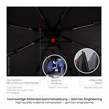 - FLACH UND LEICHT: Dieser Regenschirm ist sehr leicht, flach und dennoch wind- und sturmsicher: Windkanal getestet bis 80 km/h