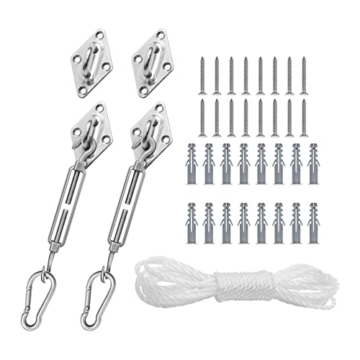 - Einfache Montage: Dieser Sonnenschutz lässt sich schnell und einfach zusammenbauen. Mit Seilen und Edelstahlbefestigungen können Sie den Sonnenschutz über die D-Ring aus rostfreiem Stahl an der Wand oder anderen Vorrichtungen befestigen. Wir empfehlen, ihn in einem Winkel von mindestens 20° anzubringen, um zu verhindern, dass das Gewebe durch das stehende Wasser absinkt.